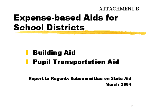 2. Expense-Based Aids (Attachment B). At the February meeting, the Subcommittee chair asked for additional information on how the expense-based aids work. Information is provided on State Building Aid and Transportation Aid.