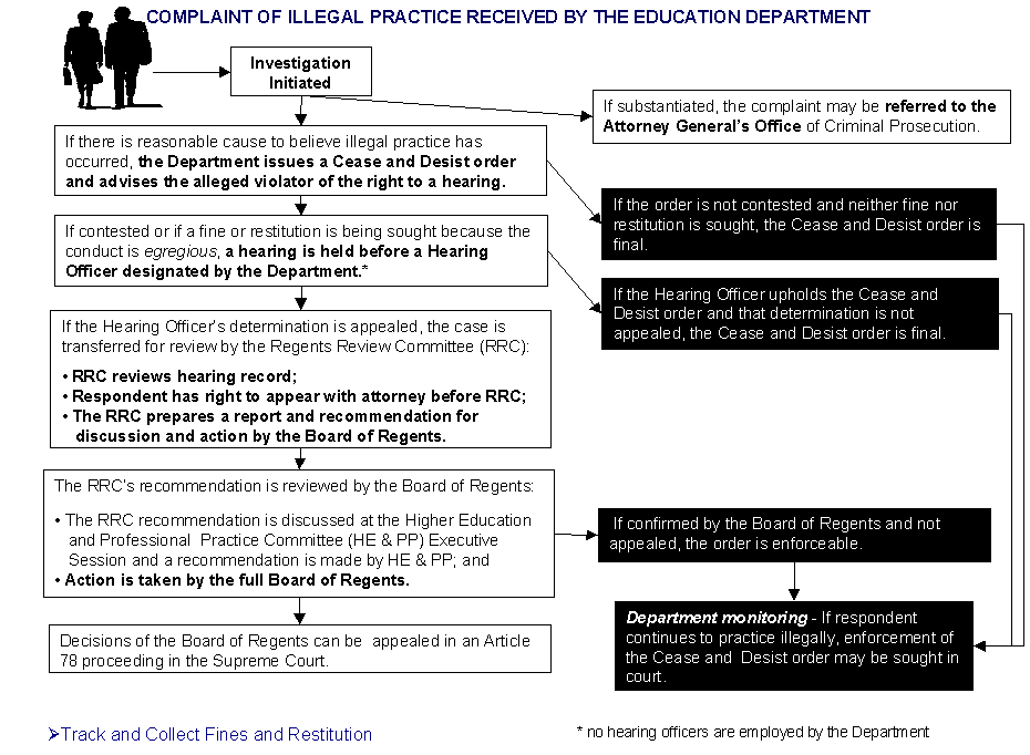 · The Board of Regents decision may be appealed to State Supreme Court. A Supreme Court order must also be sought to enforce the cease and desist order and/or the associated fines.